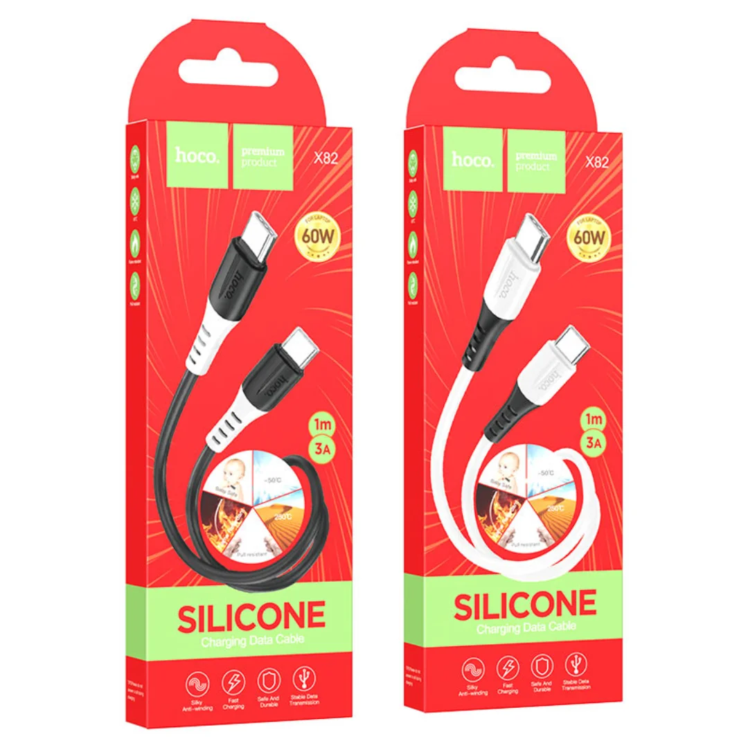 X82, Type-C to Type-C 60W charging data cable, 1m, silicone material, support up to 60W (20V / 3A) charging for laptop and 3A current for mobile phones