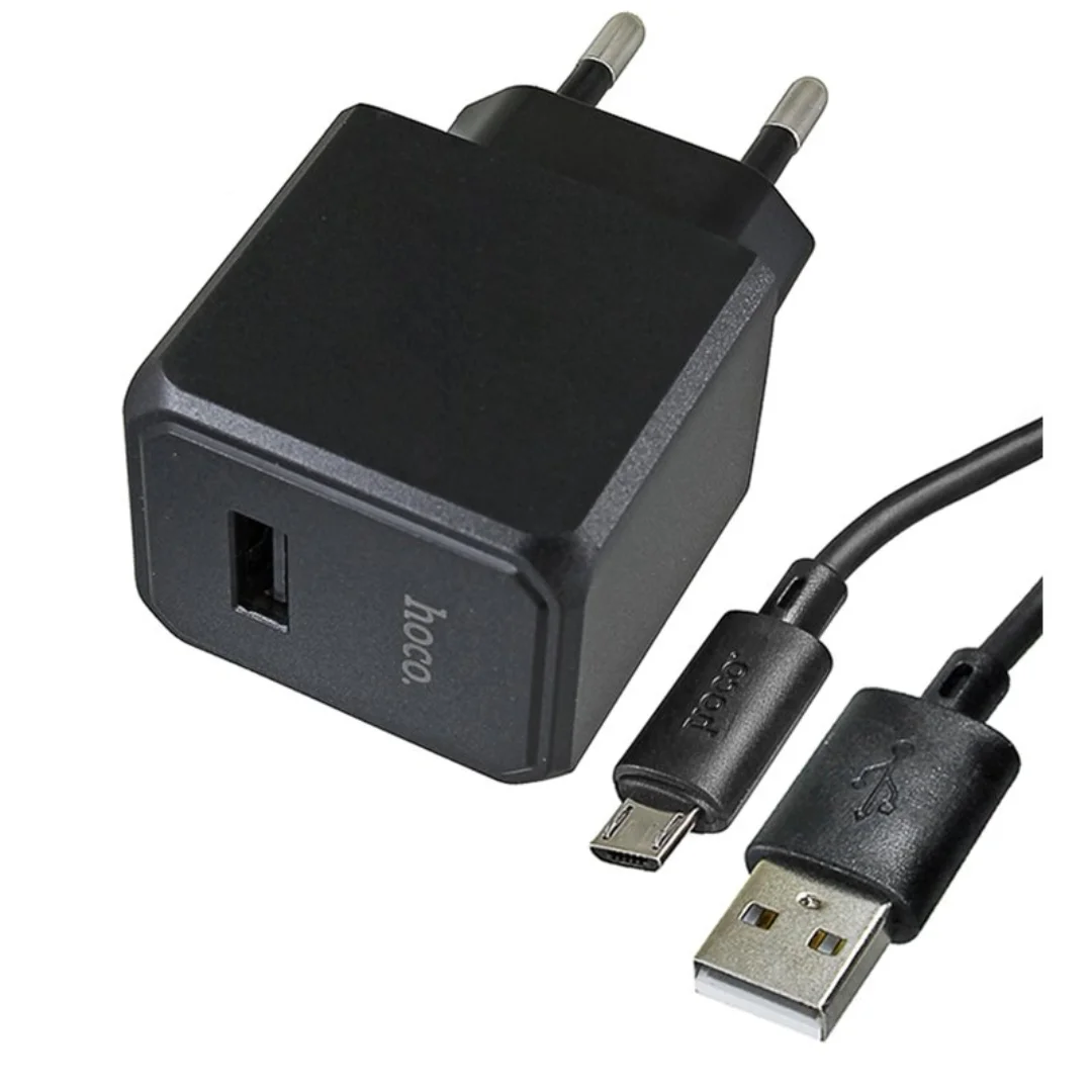 Brand :Hoco Brand 1. Input: AC100-240V, 50 / 60Hz, 0.3A. 2. Output: 1 × USB-A – 5V / 2.1A – 10.5W. 3. EU plug. 4. Material: flame retardant PC + ABS. 5. Sets with 1m cable USB-A to Lightning or USB-A ...