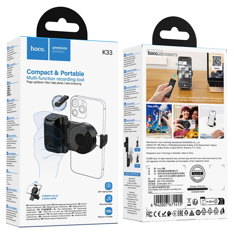 hoco. K33 Oleada, grip handle with remote control, for 4.5 – 7″ phones, desktop stand