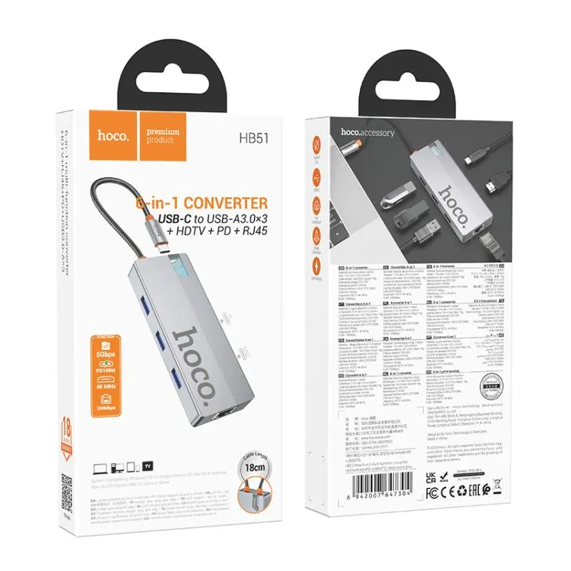 3. Interface: Type-C to HDTV+RJ45+PD+USB3.0 * 3