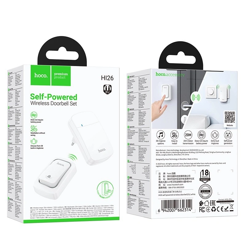 Self-powered transmitter — no batteries or wiring needed for the door button.