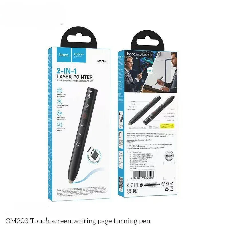 2-in-1 Functionality - Laser pointer + stylus pen.
