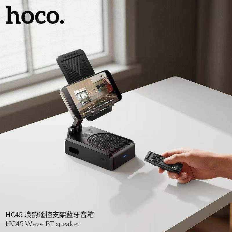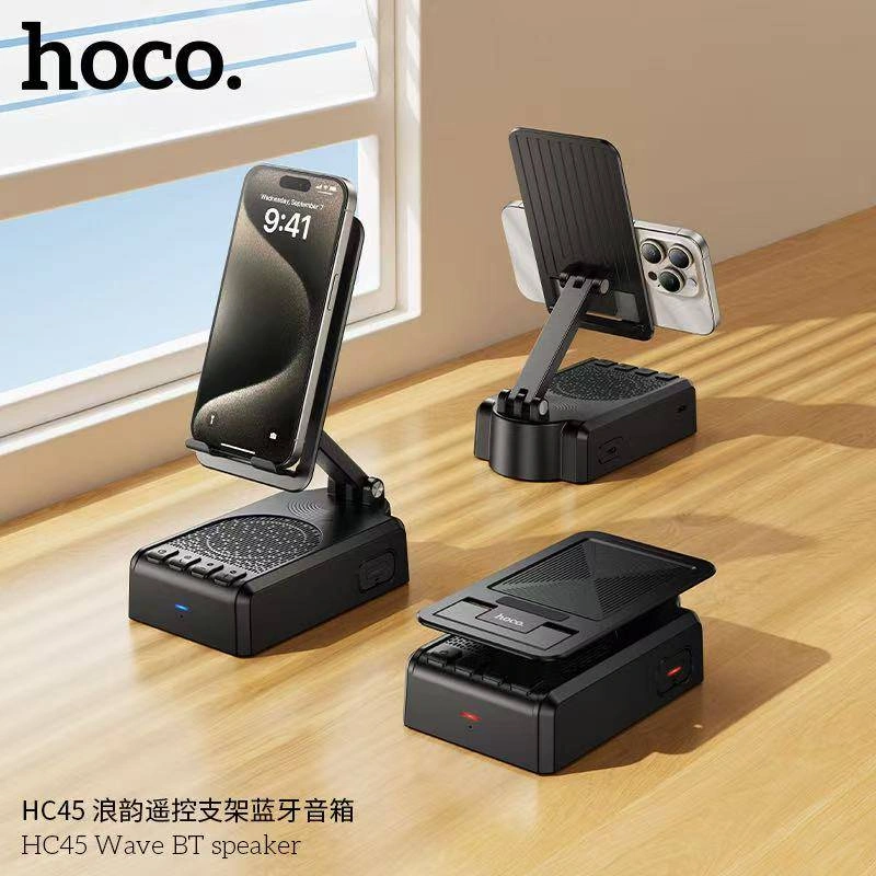 This is a Hoco HC45 Wave BT speaker, which is a portable Bluetooth speaker that also functions as an adjustable phone stand.