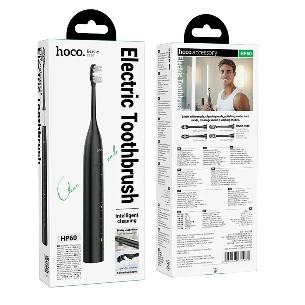 Operating modes: whitening, cleaning, grouping, care, massage (15 gears)