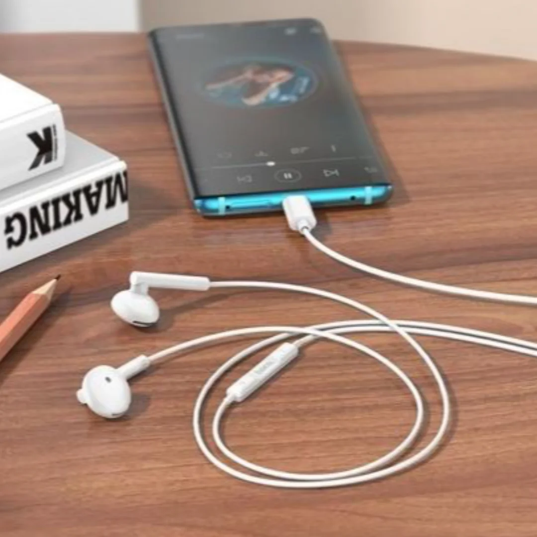 Hoco 1.2m Type-C Wire-controlled Earphones with Microphone – White
