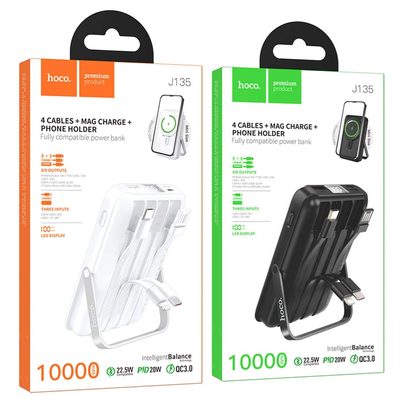 1 × built-in Type-C cable – 5V / 3A, 9V / 2A, 10V / 2.25 (SCP), 12V / 1.5A – 22.5W max.