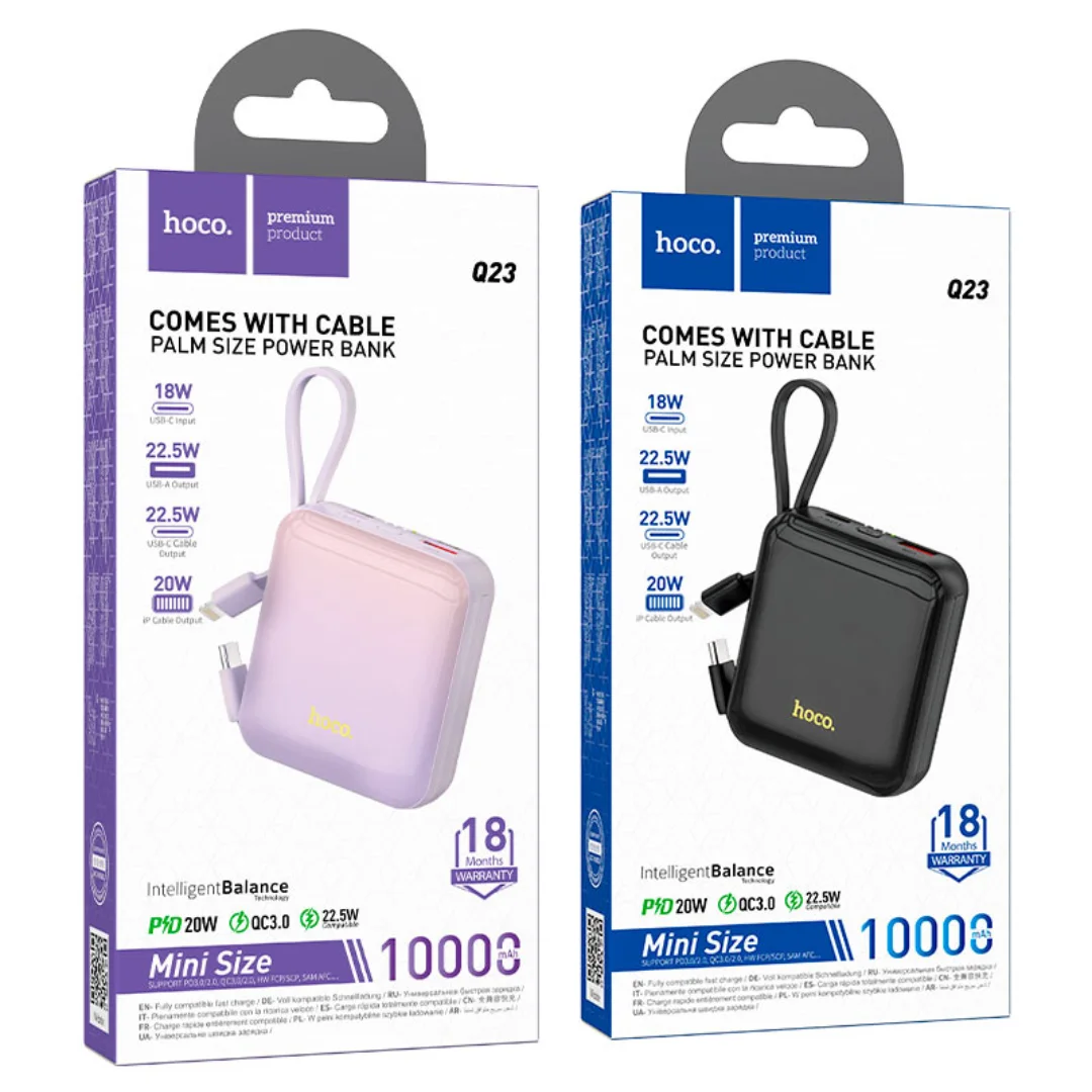 1 × built-in cable Type-C – 4.5V / 5A, 5V / 4.5A, 9V / 2A, 12V / 1.5A – 22.5W (max).